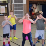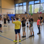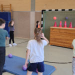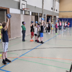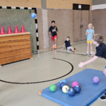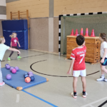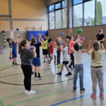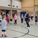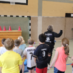 Angela Beckers-Rützel und Hannah Evers besuchten unsere dritten Klassen und ermöglichten den Kindern einen Einblick in die Handballwelt. Die Kinder waren mit unglaublich viel Elan, Motiviation und Freude dabei. Nach einem kurzen Warm-up unter dem Motto „Alles dreht sich um den Ball“ konnten die Hagelkreuzer an verschiedenen Stationen Übungen zum Werfen, Fangen, Hochwerfen, Laufen, Zielwerfen und Prellen erproben.