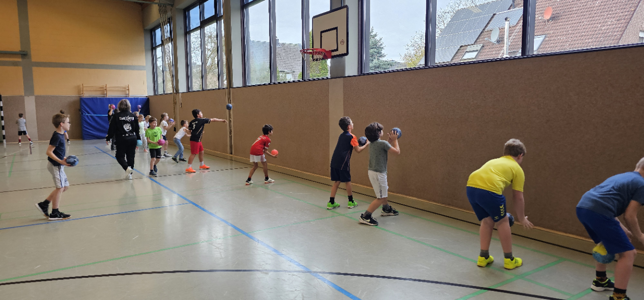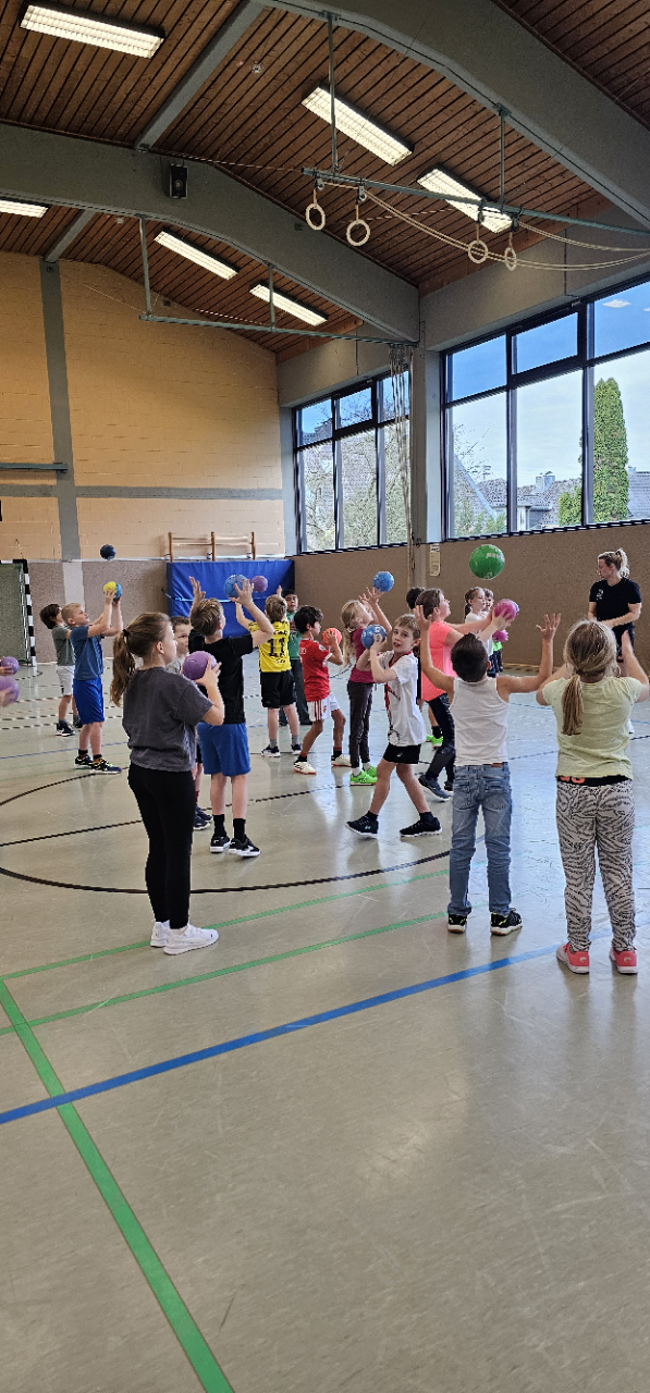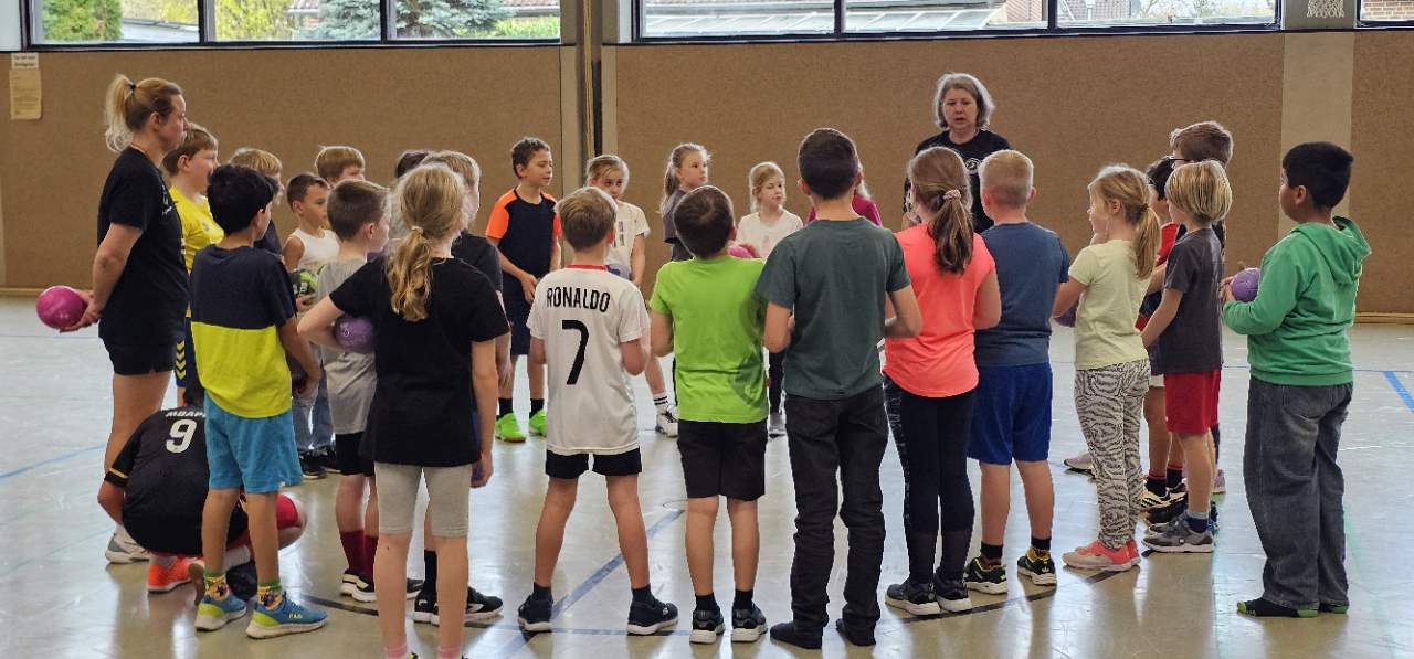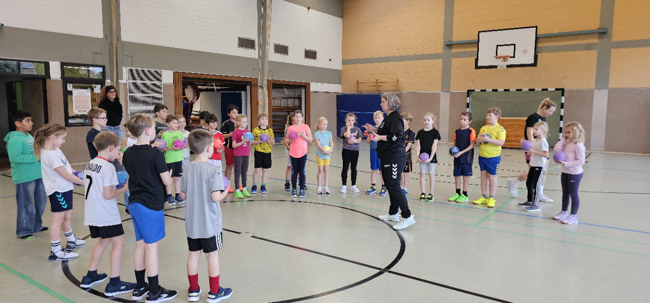 Auch an der Hagelkreuzschule Lüttingen machte der Handball-Grundschulaktionstag des Deutschen Handballbundes wieder Station. Die Aktion fand dort bereits zum wiederholten Male statt und unterstreicht die gewachsene und vertrauensvolle Zusammenarbeit zwischen Schule und Verein.